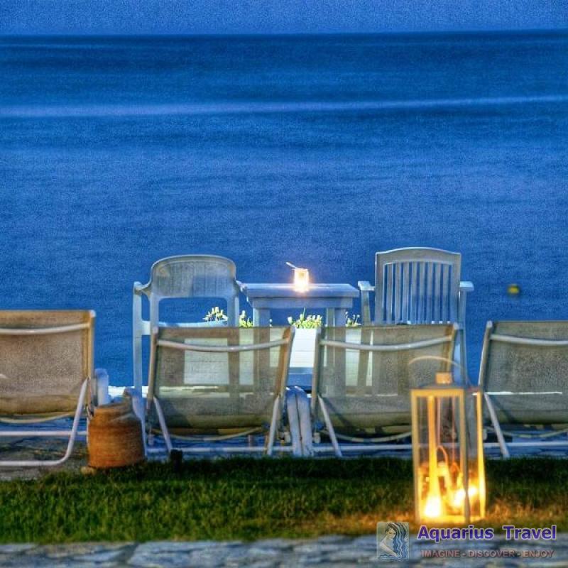 Στον περιβάλλον χώρο υπάρχει μεγάλη πισίνα με pool bar καθώς και μία εξέδρα ακριβώς μπροστά από όπου μπορείτε να χαρείτε τη θάλασσα! Το μεσημέρι λειτουργει το εστιατόριο του ξενοδοχείου το οποίο διαθέτει παραδοσιακή ελληνική κουζίνα και σπιτικό φαγητό.