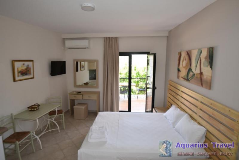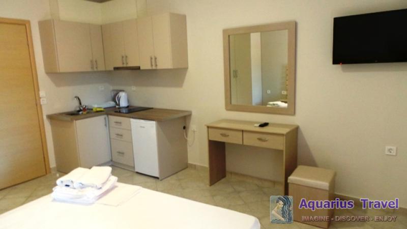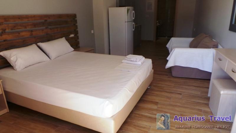 Διαθέτει συνολικά 2 διαμερίσματα και 3 στούντιο. Τα διαμερίσματα είναι αυτόνομα bungalow & αποτελούνται από ένα μεγάλο σαλόνι-κουζίνα, 1 υπνοδωμάτιο και μπάνιο. Το μεγάλο στούντιο μπορεί να φιλοξενήσει έως μία τετραμελή οικογένεια καθώς έχει 1 διπλό κρεβάτι και 1 καναπέ-κρεβάτι. Επίσης διαθέτει 2 νεόκτιστα δίκλινα στούντιο με θέα στο λιμάνι, με δυνατότητα φιλοξενίας 2 ενηλίκων και 1 παιδιού σε καναπέ-κρεβάτι.