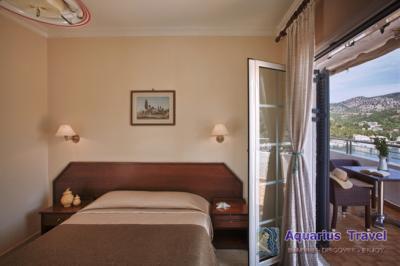 α) Το δίκλινο plus διαμέρισμα μπορεί να φιλοξενήσει 2-4 άτομα. Αποτελείται από δύο χώρους, το υπνοδωμάτιο και το καθιστικό με το κουζινάκι. Το καθιστικό μπορεί να χρησιμοποιηθεί και για τη φιλοξενία δύο ατόμων στον καναπέ-κρεβάτι που διαθέτει.