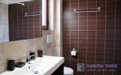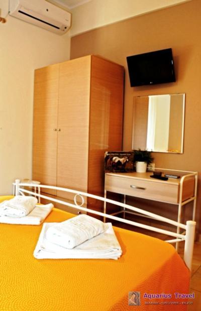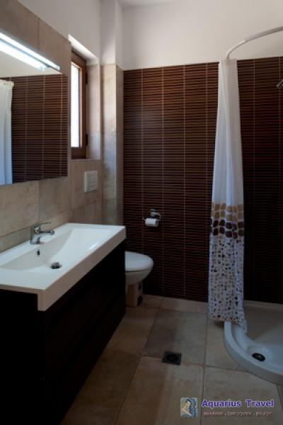 Each apartment is 52 m² and consists of one bedroom with double bed, separate living area - kitchen (with cooker, microwave, fridge, toaster, kettle) with two single beds, bathroom and a spacious balcony or terrace. Each area has individual air-conditioning and TV.