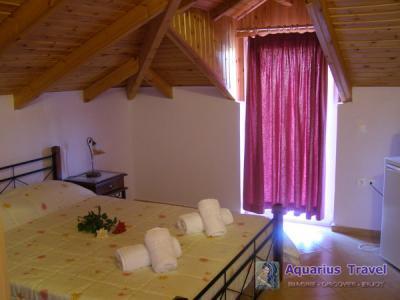 A short distance away from the square of the village is our complex of rooms to let. Cosy and bright rooms with huge open plan space can easily accommodate 2 – 5 people. Colorful, with tasteful furniture, big patios and a totally home-like atmosphere, our rooms are surrounded by olive groves and green gardens. Fully equipped with TV, A/C, fridge, coffee maker and a kitchen with all the necessary kitchen utensils.